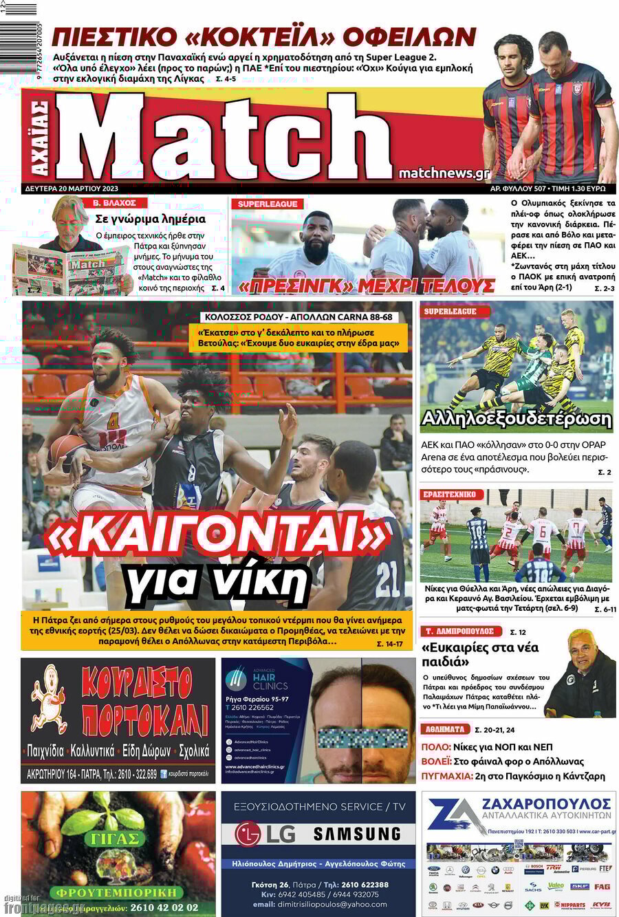 Οι αθλητικές μεταδόσεις της ημέρας (19/03/2023)