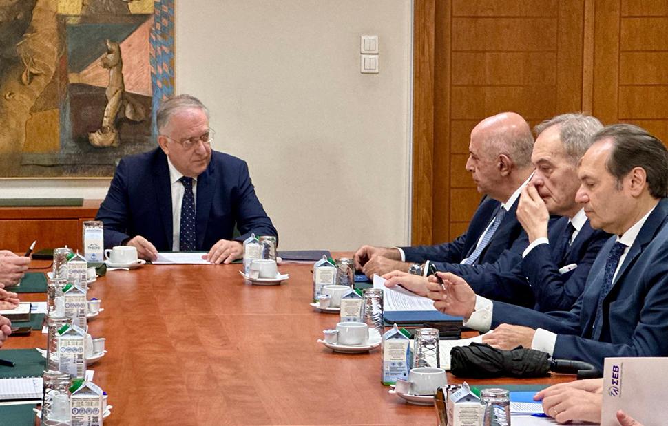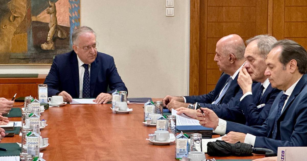 Συνάντηση εργασίας πραγματοποίησε σήμερα ο Υπουργός Ανάπτυξης, Τάκης Θεοδωρικάκος, με αντιπροσωπεία του Συνδέσμου Επιχειρήσεων και Βιομηχανίων, με επικεφαλής τον πρόεδρό του, Σπύρο Θεοδωρόπουλο και τα μέλη του Δ.Σ. Ευάγγελο Χρυσάφη και Θεόδωρο Τρύφων. Παρόντες στην συνάντηση ήταν ο Υφυπουργός Ανάπτυξης, αρμόδιος για θέματα Βιομηχανίας, Λάζαρος Τσαβδαρίδης, ο Γενικός Γραμματέας Βιομηχανίας, Λευτέρης Κρητικός και η Γενική Γραμματέας Ιδιωτικών Επενδύσεων, Στελλίνα Σιαράπη.