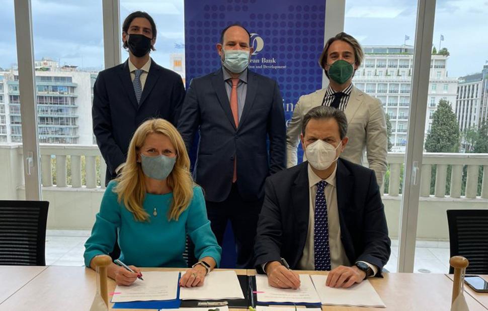 Τη σχετική σύμβαση υπέγραψαν η Director και Regional Head of Greece & Cyprus της EBRD, κυρία Andreea Moraru και ο Αναπληρωτής Υπουργός Οικονομικών, αρμόδιος για το Ταμείο Ανάκαμψης και τη δημοσιονομική πολιτική, κ. Θόδωρος Σκυλακάκης, παρουσία του Διοικητή του Ταμείου, κ. Νίκου Μαντζούφα.