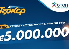 Σε τροχιά τζακ ποτ βρίσκεται το ΤΖΟΚΕΡ που απόψε κληρώνει 5 εκατομμύρια ευρώ στην πρώτη κατηγορία. Το παιχνίδι έχει συμπληρώσει 13 κληρώσεις χωρίς νικ...