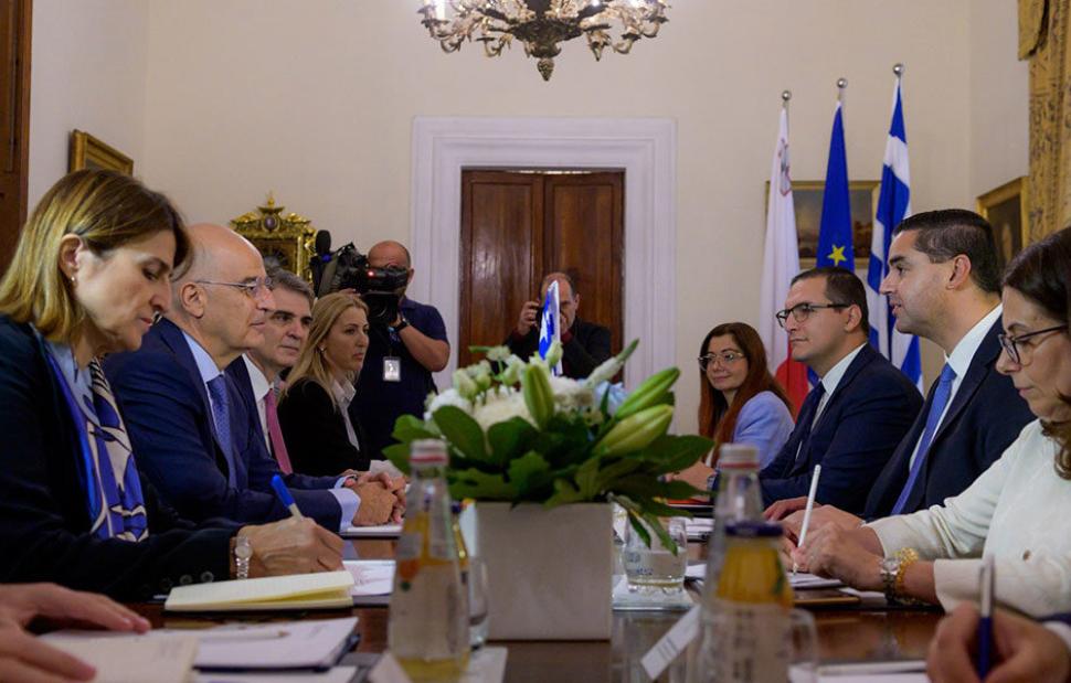 Foreign Minister Nikos Dendias continued his trip to brief Mediterranean countries on Turkey’s agreement on hydrocarbons exploration with the Tripoli government in Libya Monday by visiting Malta and having talks with Minister for Foreign and European Affairs and Trade Ian Borg.