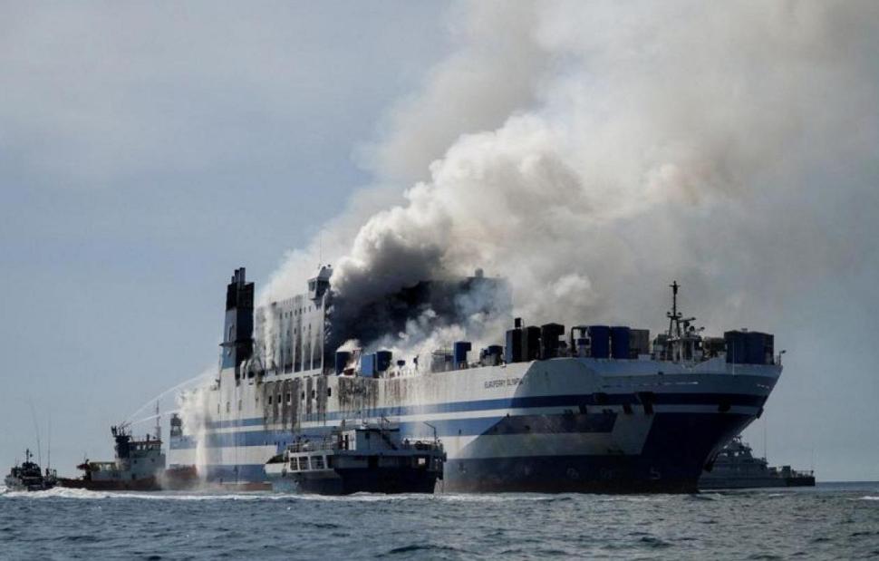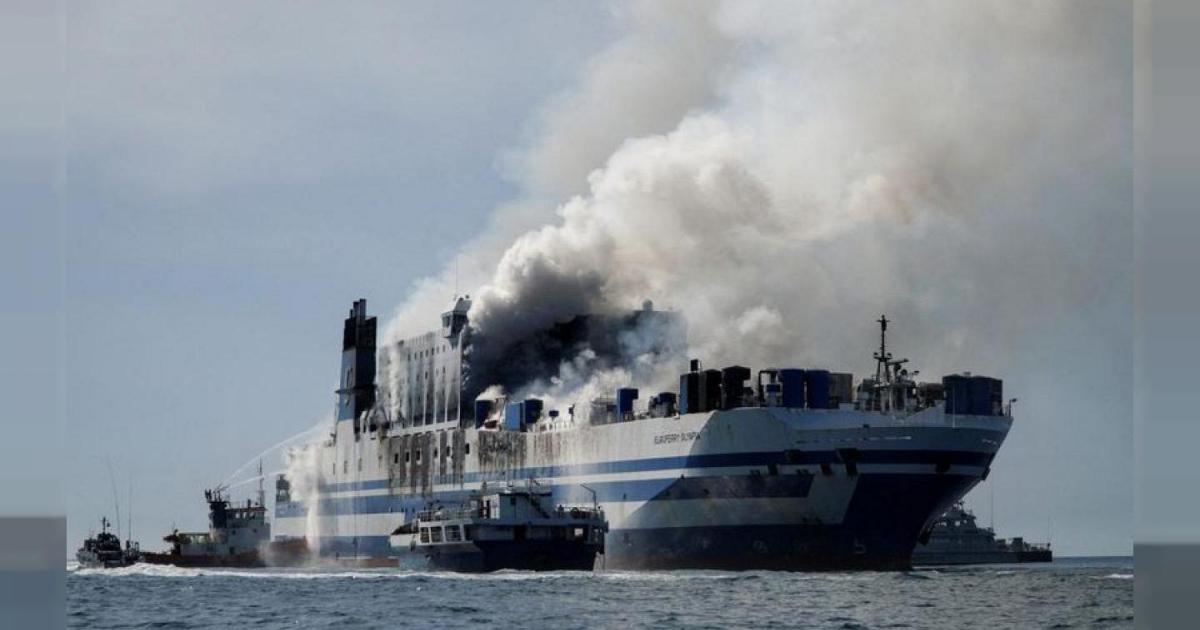 The fire on the Italian-flagged Euroferry Olympia broke out on February 18 as it was sailing to the Italian port of Brindisi.