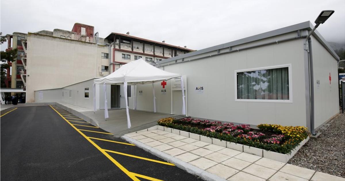 18 κινητές κλίνες Μονάδας Εντατικής Θεραπείας σε δύο πτέρυγες, οι οποίες τοποθετήθηκαν εντός συγκροτήματος 12 οικίσκων που δημιουργήθηκαν για αυτόν τον σκοπό, συνολικής ωφέλιμης στεγασμένης έκτασης 324 τετραγωνικών μέτρων.