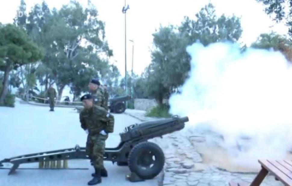 Ο πρώτος κανονιοβολισμός σημειώθηκε στις 6:20 το πρωί, από το πυροβολείο του Λυκαβηττού για να αντηχήσουν ακολούθως άλλοι 20 κανονιοβολισμοί, όπως προβλέπει το καθιερωμένο πρωτόκολλο για να τιμηθεί η ιστορική επέτειος.
