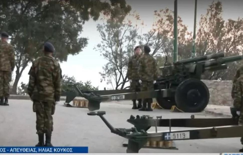 Οι καθιερωμένοι κανονιοβολισμοί έγιναν το πρωί στο Λυκαβηττό για τον εορτασμό της 25ης Μαρτίου.