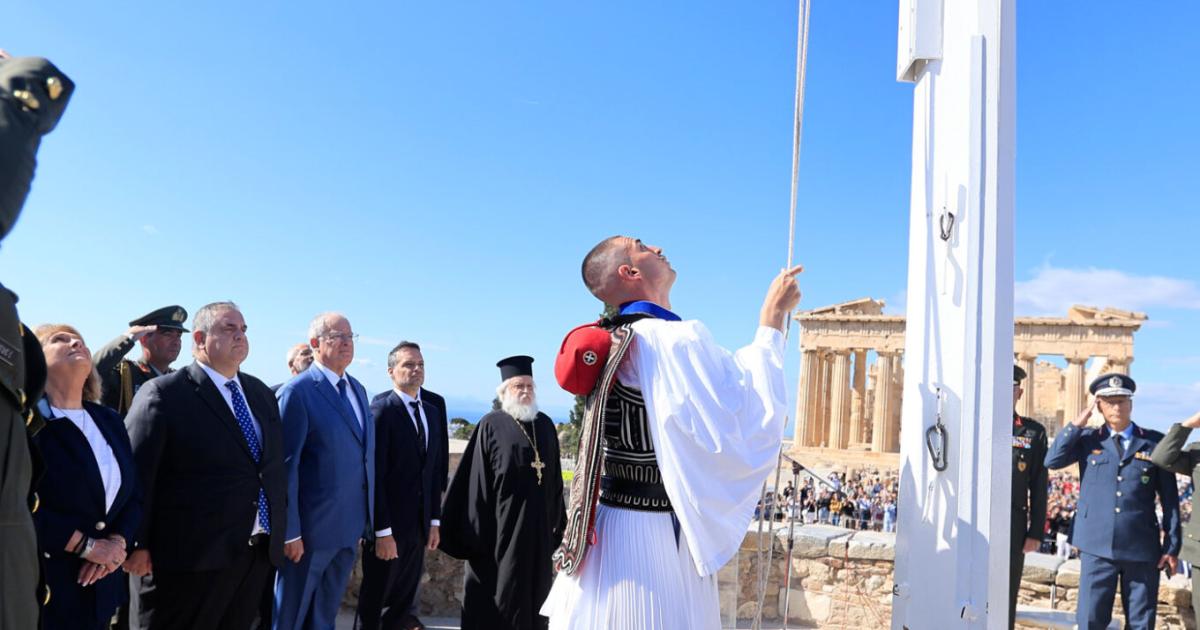 Ανάμεσά τους και ο πρόεδρος της Ελληνικής Δημοκρατίας, Κωνσταντίνος Τασούλας που παρέστη στην ανάκρουση του Εθνικού Ύμνου και στην έπαρση της Σημαίας.