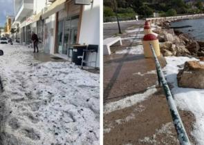Σφοδρή χαλαζόπτωση στη Λέρο