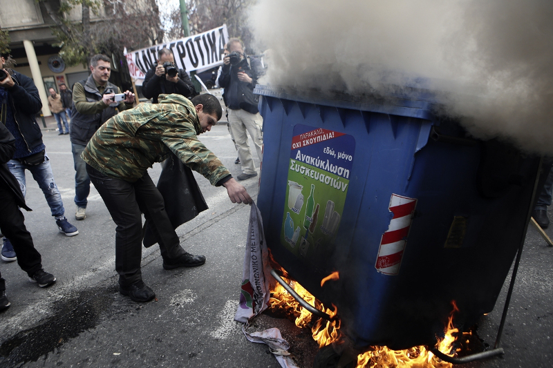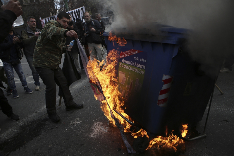 Κατά τη διάρκεια των επεισοδίων που σημειώθηκαν το πρωί στην Αθήνα ανάμεσα σε ΜΑΤ και αγρότες από την Κρήτη, οι τελευταίοι θέλοντας να εκφράσουν την απογοήτευσή τους για την πολιτική που ακολουθεί η κυβέρνηση στον αγροτικό τομέα έκαψαν επιδεικτικά μία σημαία του ΣΥΡΙΖΑ, έξω από το υπουργείο Αγροτικής Ανάπτυξης.