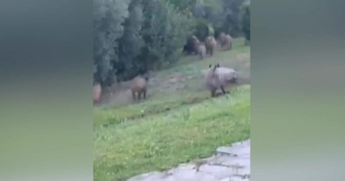 Η ώρα είναι 8 το πρωί, μια αγέλη αγριογούρουνων μαζί με τα μικρά βγήκε για την πρωινή της βόλτα έξω από τις αυλές των σπιτιών, στον οικισμό Πανεπιστημιακών Αριστοτελείου Πανεπιστημιίου Θεσσαλονίκης «Παπακυρίτση», στη Φούρκα Χαλκιδικής, όπως κατέγραψαν με το κινητό τους τηλέφωνο κάτοικοι της περιοχής.