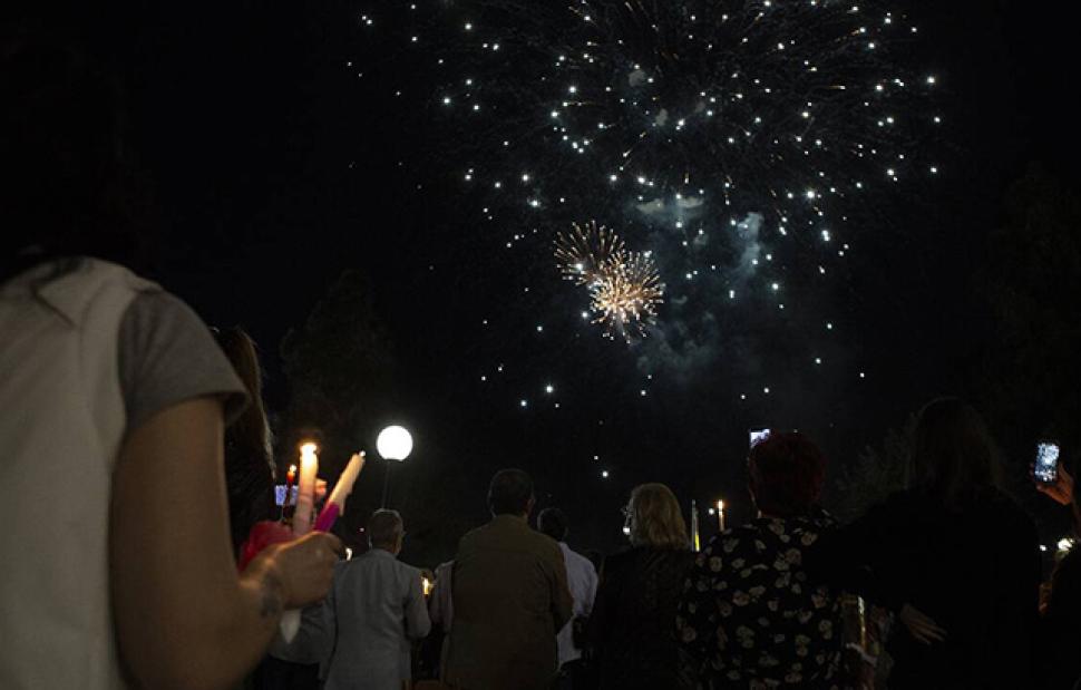 Πολίτες που βρίσκονταν στο σημείο για να γιορτάσουν την Ανάσταση παρατήρησαν δυο άντρες με καραμπίνες στα χέρια στο πίσω μέρος του ναού και αμέσως κάλεσαν την Αστυνομία, όπως μεταδίδει η ΕΡΤ.