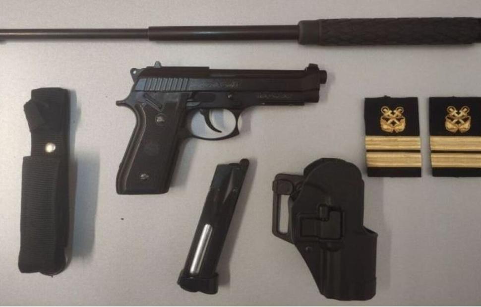 Ο 46χρονος εντοπίστηκε στη μαρίνα του Αγίου Κοσμά, έχοντας στην κατοχή του ένα οπλισμένο πιστόλι διαμετρήματος 4,5 mm με γεμιστήρα, καθώς και μία μεταλλική πτυσσόμενη ράβδο συνολικού μήκους πενήντα πέντε εκατοστών.