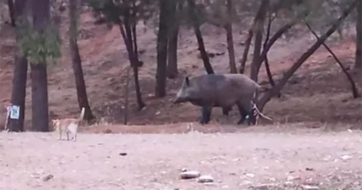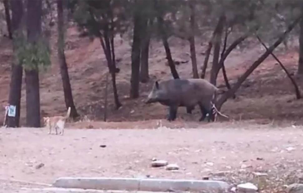 Ένα αγριογούρουνο, το οποίο μάλιστα είχε παρέα γάτες που έπαιζαν μαζί του, έκανε την εμφάνιση στη συνοικία του Δαφνιού, στο Χαίδάρι.