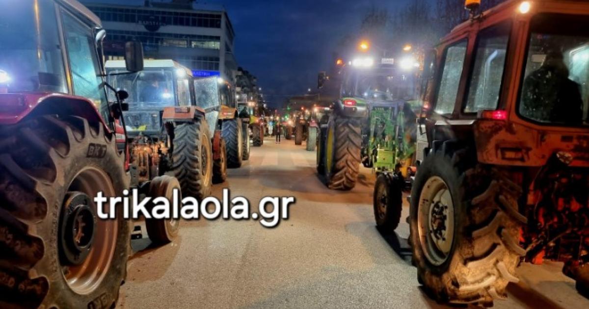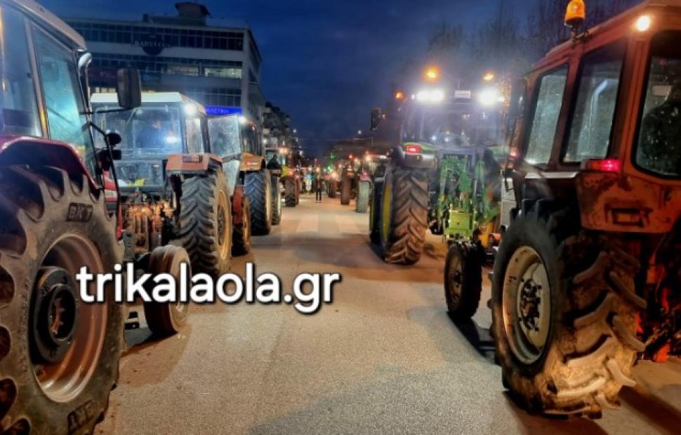 Στο κέντρο των Τρικάλων, μαζί με τα τρακτέρ τους, βρέθηκαν οι αγρότες, αργά το απόγευμα της Παρασκευής, στο πλαίσιο της κλιμάκωσης των κινητοποιήσεών τους.