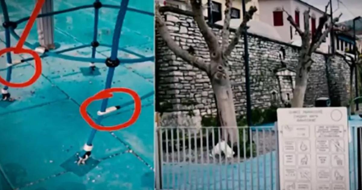 Τα κάγκελα που έχουν τοποθετηθεί περιμετρικά της παιδικής χαράς είναι χαμηλά.