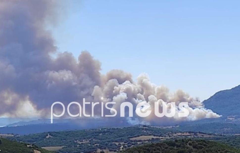 Η ανησυχία είναι μεγάλη, αφού η φωτιά κατευθύνεται προς την Ηλεία και συγκεκριμένα προς την Πηνεία.