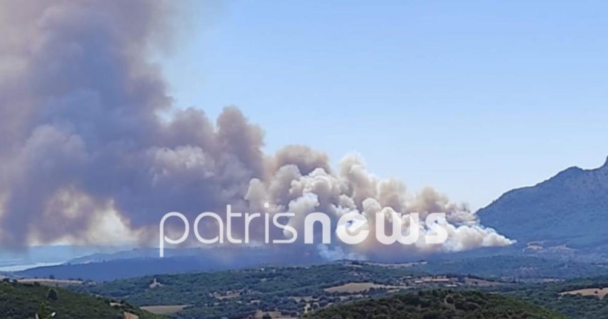 Οι πυκνοί καπνοί, ήδη είναι ορατοί και από την πόλη του Πύργου, με το έργο των πυροσβεστών να χαρακτηρίζεται πολύ δύσκολο.