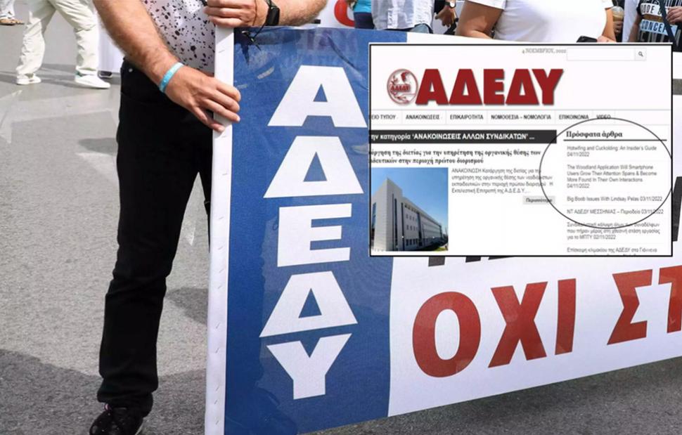 Συγκεκριμένα, όπως έγινε γνωστό το πρωί της Παρασκευής ανέβηκαν στο site της ΑΔΕΔΥ κείμενα που δεν έχουν σχέση με τη δράση της Ανώτατης Διοίκησης Ενώσεων Δημοσίων Υπαλλήλων, αλλά αναφέρονται σε πορνογραφικές φαντασιώσεις.