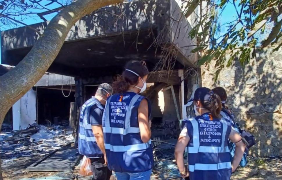 Όσον αφορά τα κτίρια, έχει ενεργοποιηθεί το σχήμα της στεγαστικής συνδρομής για όλα τα κτίρια (σπίτια, επαγγελματικοί χώροι, αποθήκες, λοιποί χώροι κ.λπ.), το οποίο υλοποιείται από τη ΓΔΑΕΦΚ. Παράλληλα, ενεργοποιήθηκε και το σχήμα της αποζημίωσης της οικοσκευής και μικρών επισκευαστικών εργασιών σε κατοικίες και της κάλυψης των πρώτων αναγκών για τα νοικοκυριά των οποίων η κατοικία επλήγη από την πυρκαγιά, με τις αυτοψίες να πραγματοποιούνται επίσης από τη ΓΔΑΕΦΚ προς διευκόλυνση των δήμων, οι οποίοι και θα καταβάλουν την εν λόγω ενίσχυση στους δικαιούχους.