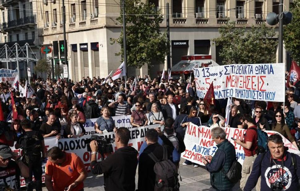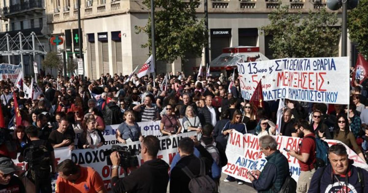 Πλήθος διαδηλωτών βρίσκεται στο Σύνταγμα έξω από τη Βουλή με πλακάτ και πανό, ενώ οι συγκεντρωμένοι του ΠΑΜΕ βρίσκονται στην οδό Πανεπιστημίου μπροστά από τα Προπύλαια, όπου εκεί δίνει το παρών και ο ΓΓ του ΚΚΕ Δημήτρης Κουτσούμπας.