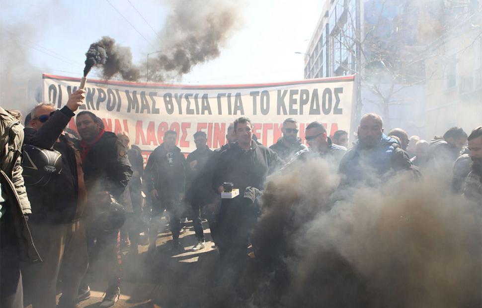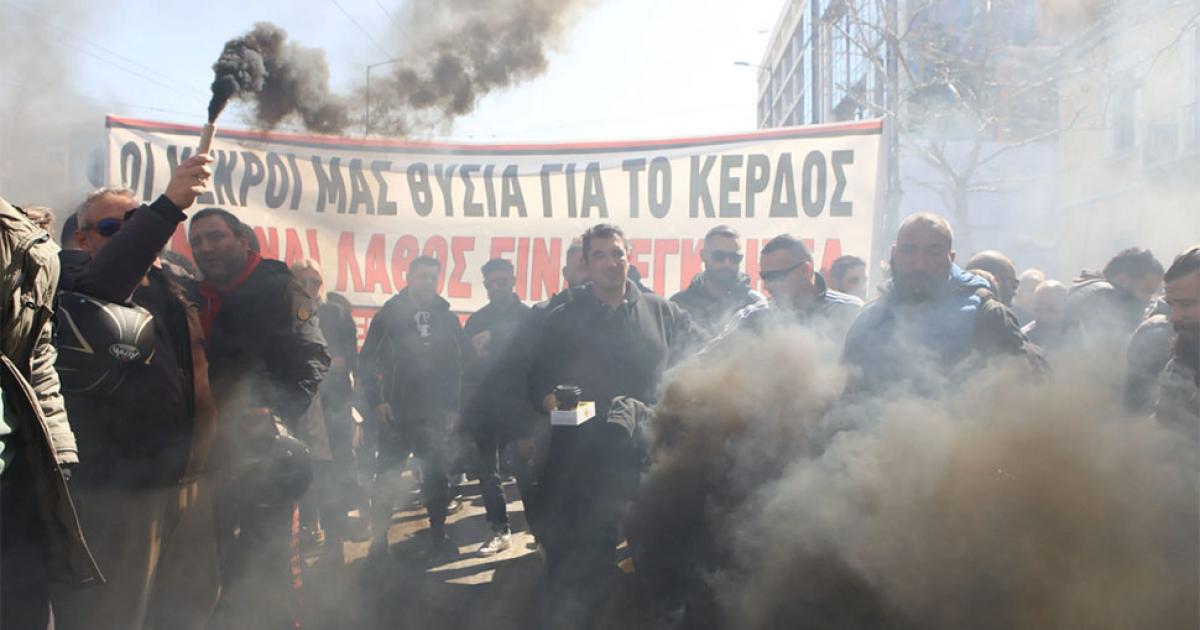 Αστυνομικοί στο κέντρο της Αθήνας προχώρησαν σε δύο συλλήψεις νεαρών στο κέντρο της Αθήνας, γιατί εντόπισαν στα σακίδιά τους φωτοβολίδες και ένα όπλο-ρέπλικα. Οι αστυνομικοί προχώρησαν και σε προσαγωγές ατόμων, που κινούνταν στην πορεία.