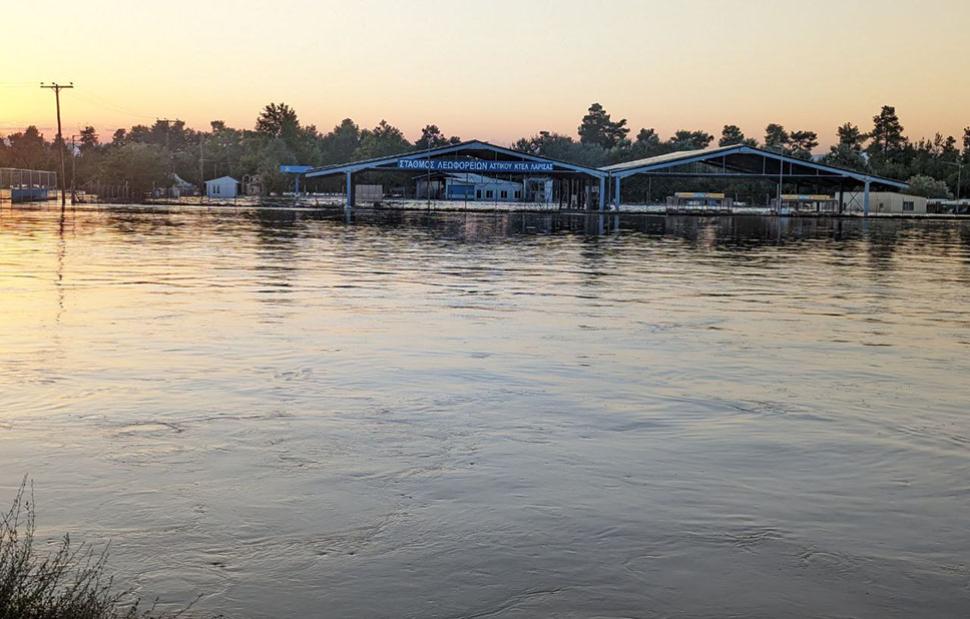 Όπως φαίνεται και στις φωτογραφίες, ο Πηνειός υπερχείλισε και πλημμύρισε τον σταθμό ΚΤΕΛ της πόλης.