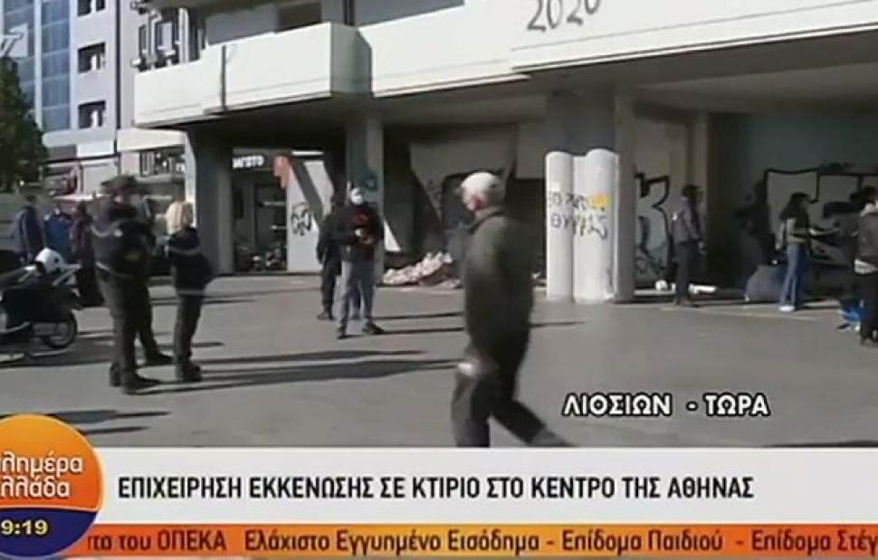 Η επιχείρηση της Αστυνομίας γίνεται σε ένα μισοτελειωμένο κτίριο απέναντι από τον σταθμό του Μετρό "Αττική", στο οποίο είχαν βρει κατάλυμα αρκετά άτομα, σύμφωνα με την ΕΡΤ.