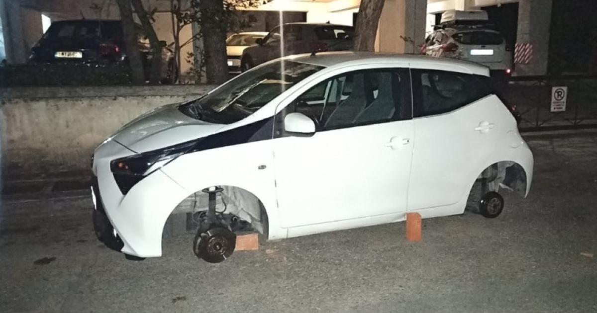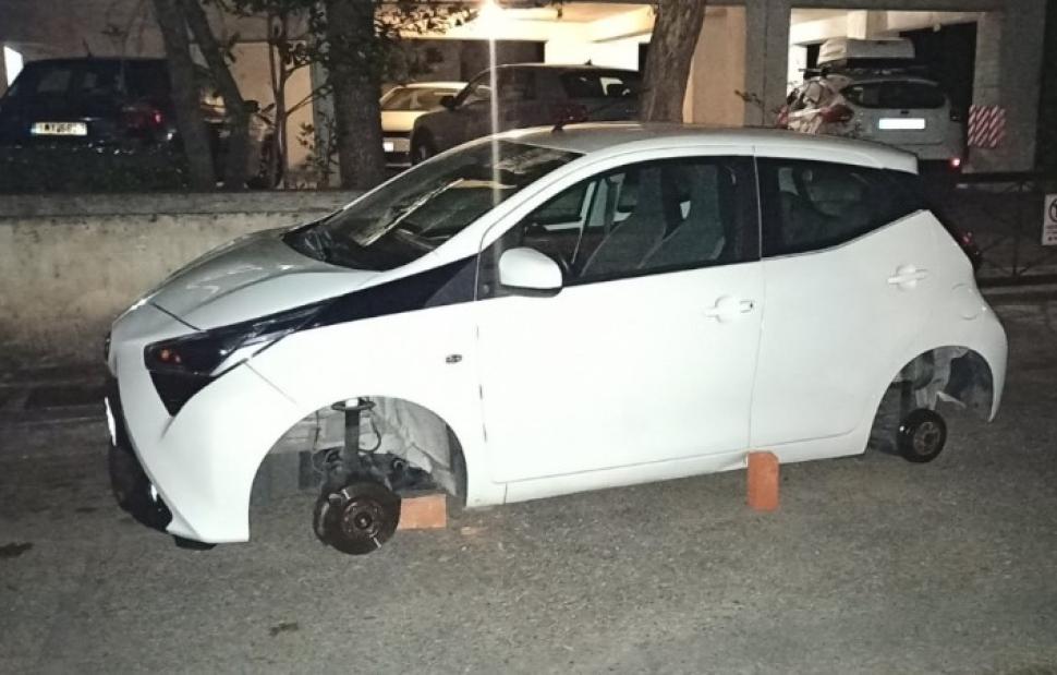 Πρόκειται για έναν Έλληνα και έναν υπήκοο Αλβανίας που είχαν συγκροτήσει ομάδα και αφαιρούσαν ζαντολάστιχα από σταθμευμένα οχήματα σε πυλωτές, όπως το Toyota Aygo που βλέπετε στις φωτογραφίες. Ο ιδιοκτήτης του ξύπνησε χθες το πρωί και κατέβηκε στο πάρκινκ της πυλωτής για να πάρει το αυτοκίνητο του όταν διαπίστωσε ότι αυτό ήταν τακαρισμένο πάνω σε τούβλα καθώς έλειπαν και τα τέσσερα ζαντολάστιχα.
