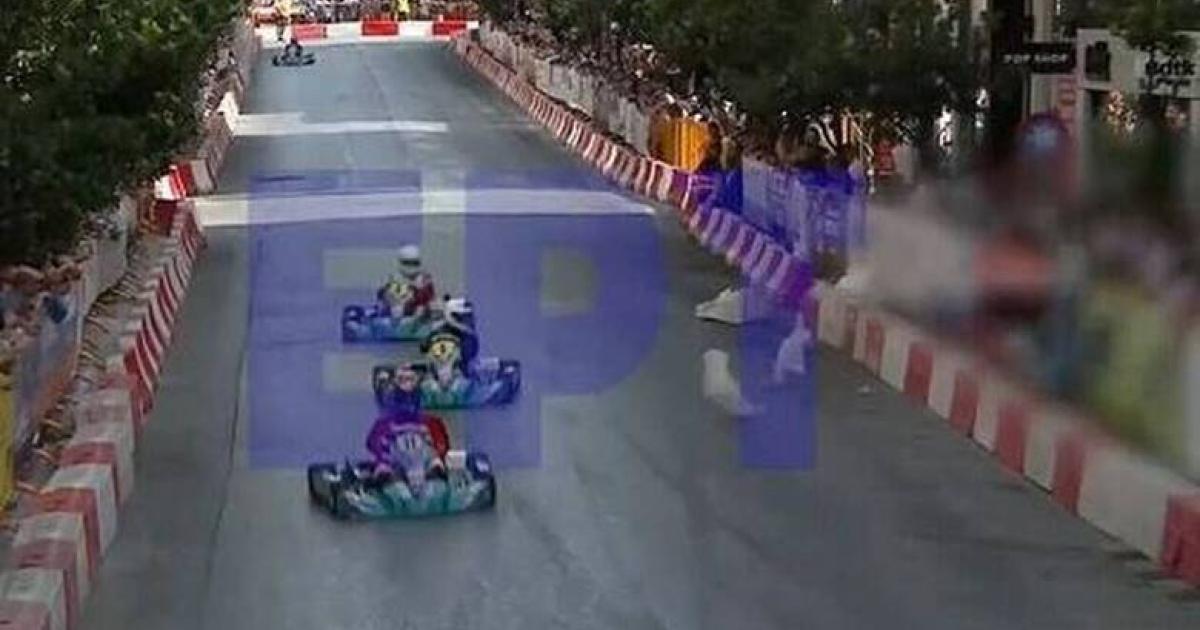 Το αγωνιζόμενο όχημα καρτ χτύπησε στις μπαριέρες της Μαιζώνος. Το καρτ αναποδογύρισε, τραυματίζοντας το παιδί που παρακολουθούσε τον αγώνα, στο κεφάλι, ενώ τραυματίας είναι και ο οδηγός.