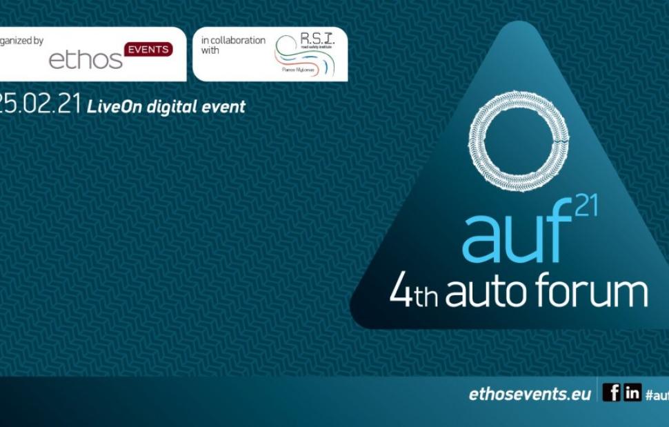 Το Auto Forum ολοκληρώθηκε με επιτυχία για 4η χρονιά στις 25 Φεβρουαρίου από την ethosEVENTS σε συνεργασία με το Ελληνικό Ινστιτούτο Έρευνας και Εκπαίδευσης για την Οδική Ασφάλεια και την Πρόληψη & Μείωση των Τροχαίων Ατυχημάτων (Ι.Ο.ΑΣ.) «Πάνος Μυλωνάς», το οικονομικό και επιχειρηματικό portal banks.com.gr και το περιοδικό ΧΡΗΜΑ και για πρώτη φορά πραγματοποιήθηκε ψηφιακά μέσα από τη LiveOn, την ολοκληρωμένη ψηφιακή τεχνολογία επιχειρηματικής επικοινωνίας του ethosGROUP, επιτρέποντας σε μεγαλύτερο αριθμό ενδιαφερομένων από διάφορα μέρη της Ελλάδας και του εξωτερικού να το παρακολουθήσουν από την άνεση και την ασφάλεια του προσωπικού τους χώρου. Υπεύθυνος του Προγράμματος ήταν ο δημοσιογράφος ο κος Τάκης Πουρναράκης.