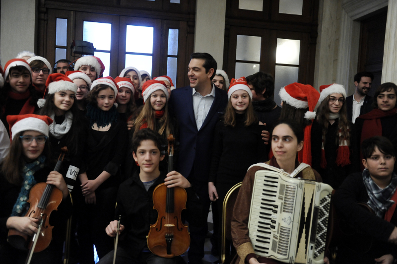 Το Μουσικό Σχολείο Αθηνών έψαλλε σήμερα, Παραμονή Χριστουγέννων, τα κάλαντα στον πρωθυπουργό Αλέξη Τσίπρα.