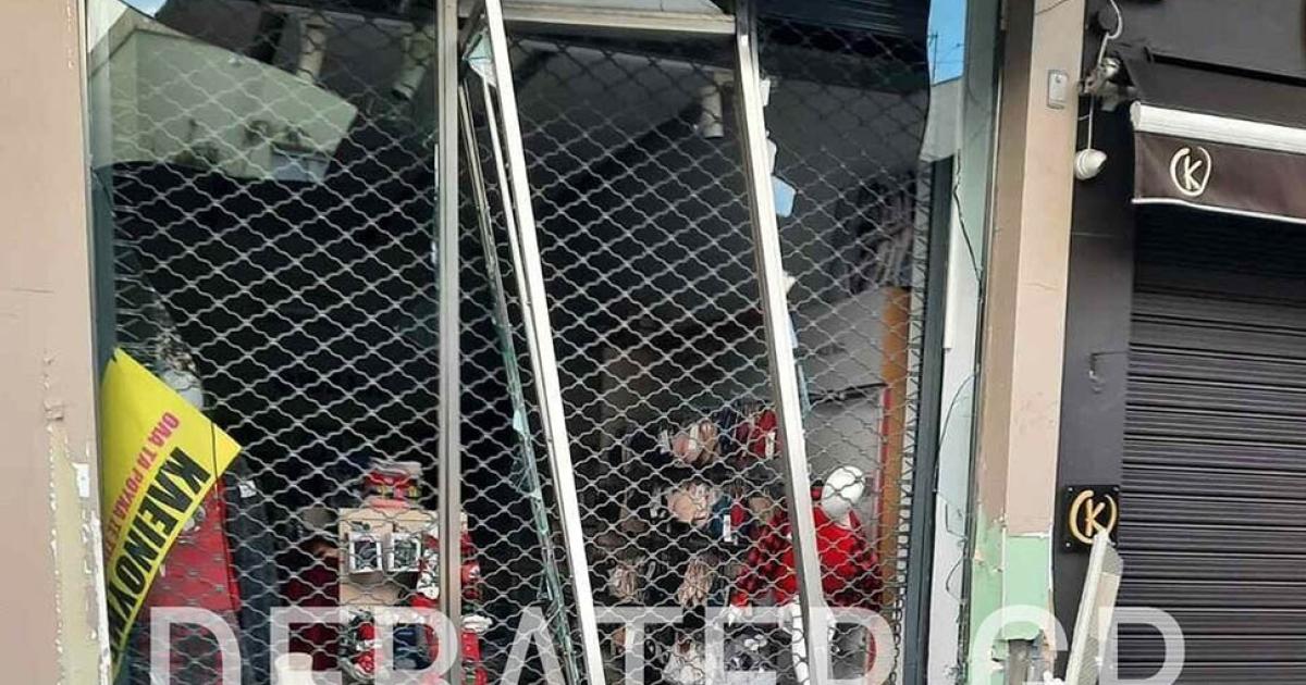 Η «τρελή» πορεία του αυτοκινήτου σταμάτησε όταν αυτό «μπήκε» σε βιτρίνα καταστήματος.