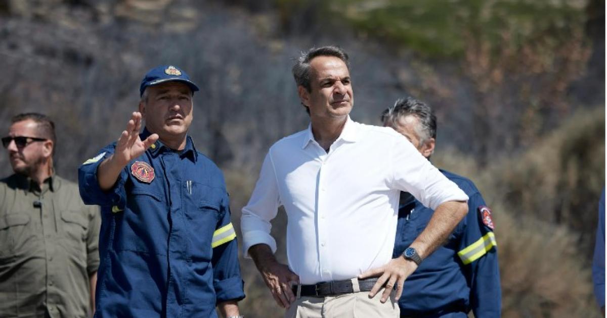 Στη συνέχεια, ο Πρωθυπουργός συνοδευόμενος από τον υπουργό Πολιτικής Προστασίας και Κλιματικής Αλλαγής, Χρήστο Στυλιανίδη, οδηγήθηκε στα σημεία που έφτασε η φωτιά και πληροφορήθηκε άμεσα για τις ζημιές.