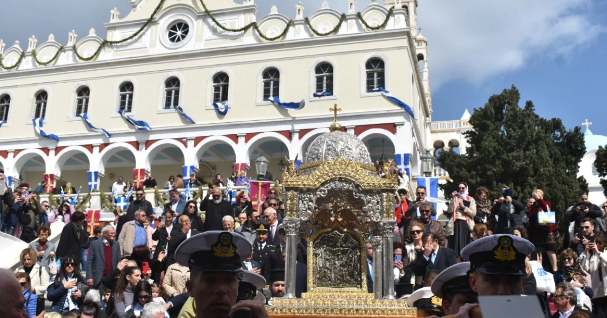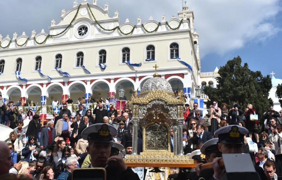Στην Τήνο, όπου γίνεται το μεγαλύτερο προσκύνημα, ο εορτασμός της Παναγίας καθιερώθηκε με Βασιλικό Διάταγμα του 1836 να είναι οκταήμερος και να διαρκεί έως τα «εννιάμερα της Θεοτόκου», στις 23 Αυγούστου, όταν σε ατμόσφαιρα συγκίνησης ψάλλονται ύμνοι και εγκώμια, μπροστά στον επιτάφιο και την εικόνα.