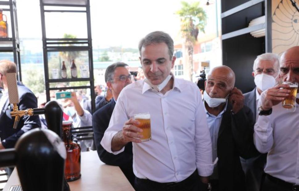 «Εξαιρετική» είπε όταν δοκίμασε τη μπίρα ο κ. Μητσοτάκης, βγάζοντας για λίγο τη μάσκα του, ενώ ευχήθηκε εις υγείαν και στους παρευρισκόμενους, δεκάδες δημοσιογράφους, λέγοντάς τους αστειευόμενος: «Εσείς δεν πίνετε, οπότε… Να ‘στε καλά!».