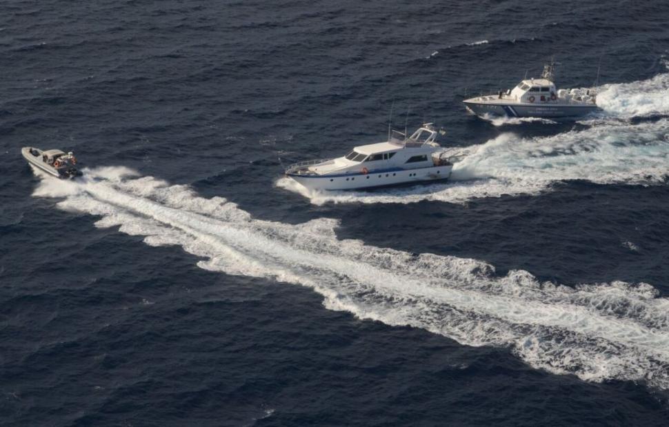 Στη συνέχεια, μετά από συντονισμένες ενέργειες του Κέντρου Επιχειρήσεων του Λιμενικού Σώματος – Ελληνικής Ακτοφυλακής, ενεργοποιήθηκαν έξι (06) περιπολικά σκάφη Λ.Σ.-ΕΛ.ΑΚΤ. (Π.Λ.Σ.-ΕΛ.ΑΚΤ.) και ένα (01) ελικόπτερο Λ.Σ.-ΕΛ.ΑΚΤ. με αποτέλεσμα τον εντοπισμό και την ακινητοποίηση του σκάφους, μετά από καταδίωξη, στη Κέα.