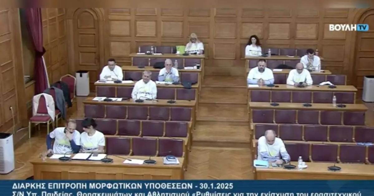 Το ίδιο μπλουζάκι στο οποίο ήταν γραμμένη η φράση «όχι στη βία» φόρεσαν οι βουλευτές όλων των κομμάτων, που συμμετείχαν στη συνεδρίαση της Διαρκούς Επιτροπής Μορφωτικών Υποθέσεων της Βουλής.