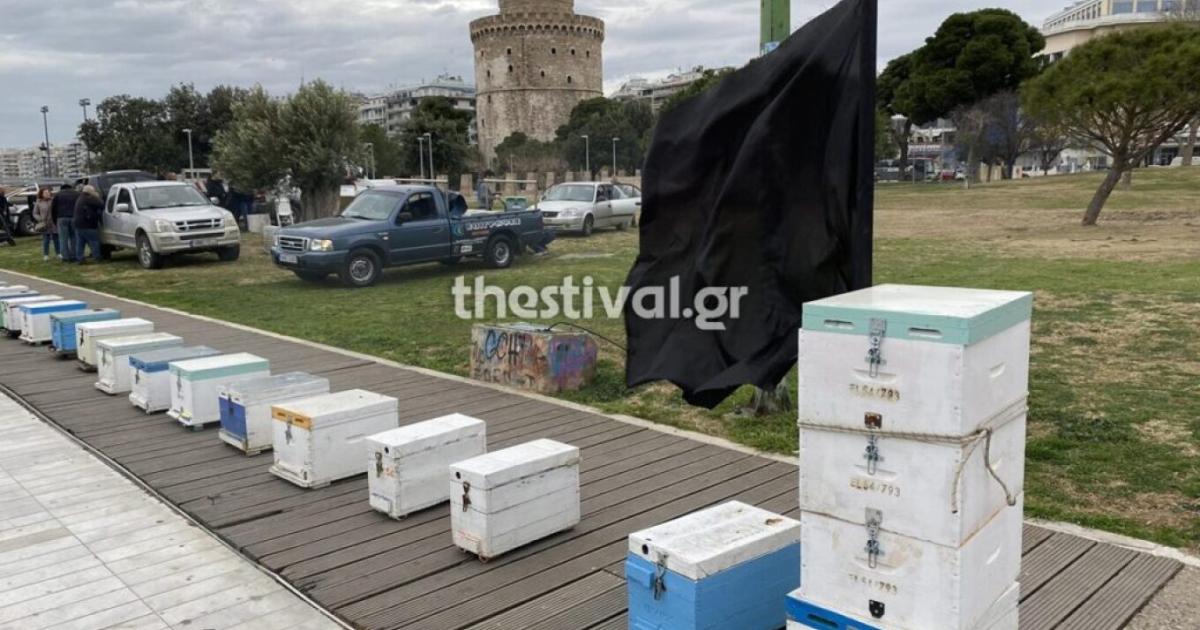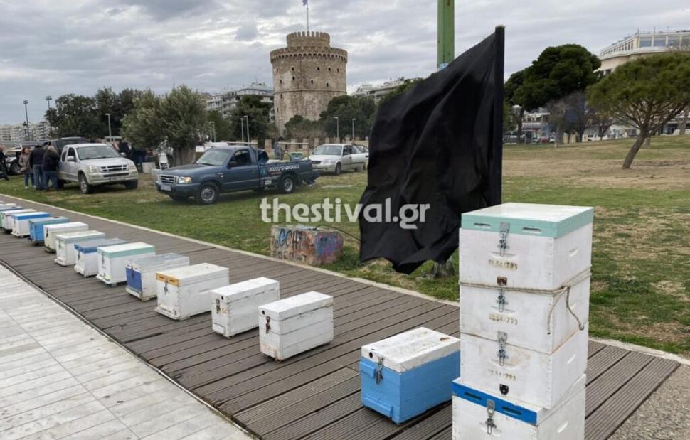 Διαμαρτυρία στη Νέα Παραλία Θεσσαλονίκης πραγματοποίησαν μέλη του Συλλόγου Μελισσοκόμων Θεσσαλονίκης.
