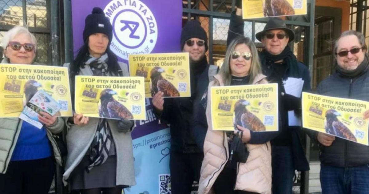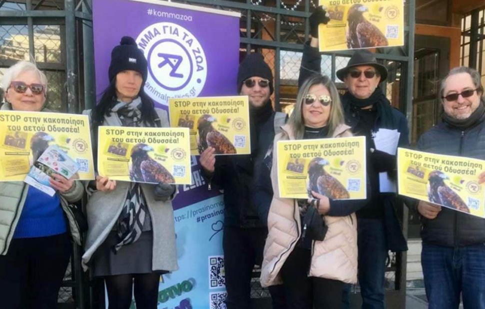 Τη Δευτέρα 13 Φεβρουαρίου 2023, μέλη του Κόμματος για τα Ζώα βρέθηκαν έξω από τα Δικαστήρια της Ευελπίδων, όπου αναβλήθηκε για τις 3 Μαΐου 2023 η εκδίκαση των Ασφαλιστικών Μέτρων που έκανε το φιλοζωικό κόμμα κατά της ΠΑΕ ΑΕΚ για τη συστηματική κακοποίηση του αετού Οδυσσέα. Επί πολλές εβδομάδες, στους εντός έδρας αγώνες της ΑΕΚ στο νέο της γήπεδο, ο αετός αναγκαζόταν να πραγματοποιεί πτήσεις και να μεταφέρει από κασκόλ έως και… μπάλες στα εντός έδρας ματς της ομάδας.