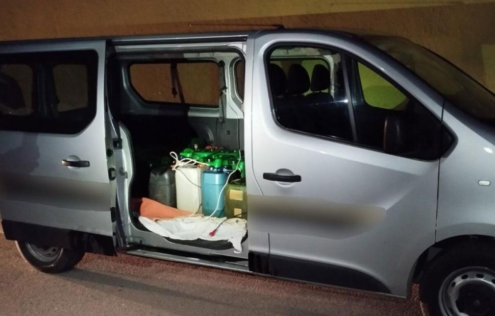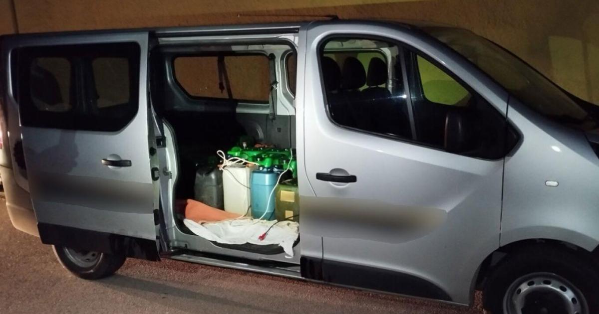 Στο όχημα εντοπίστηκαν 24 πλαστικά δοχεία των 20 λίτρων το καθένα, που περιείχαν συνολικά 480 λίτρα πετρελαίου, καθώς και 17 κενά δοχεία.