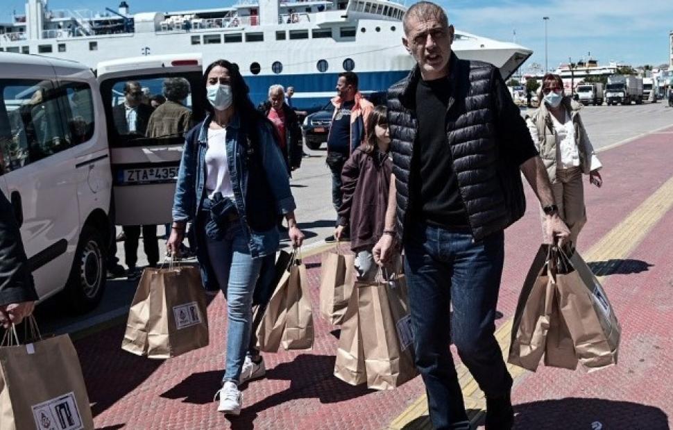 Πασχαλινά «γευμάτα αγάπης» σε άστεγους του Πειραιά, μοίρασαν σήμερα, Μεγάλο Σάββατο (15/4), ο δήμαρχος της πόλης Γιάννης Μώραλης και ο πρόεδρος της ΚΟ.Δ.Ε.Π. Ιωάννης Βοϊδονικόλας, στο λιμάνι του Πειραιά.