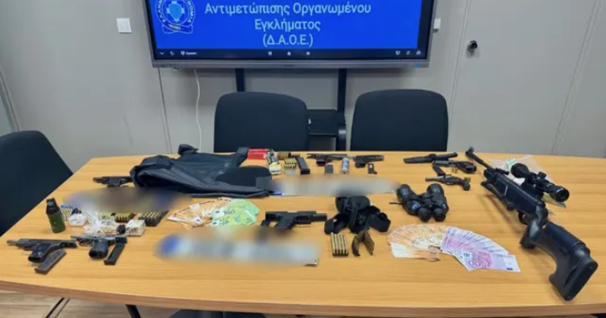 Συνολικά, από τις κατ’ οίκον έρευνες σε Βόρεια Ελλάδα και Αθήνα, εντοπίστηκαν και κατασχέθηκαν 8 όπλα (επτά 9αρια πιστόλια και ένα περίστροφο εκ των οποίων τα τρία όπλα στην Θεσσαλονίκη και τα πέντε στην Αθήνα), που μεταφέρθηκαν σε εγκληματολογικά εργαστήρια για βαλλιστική εξέταση.