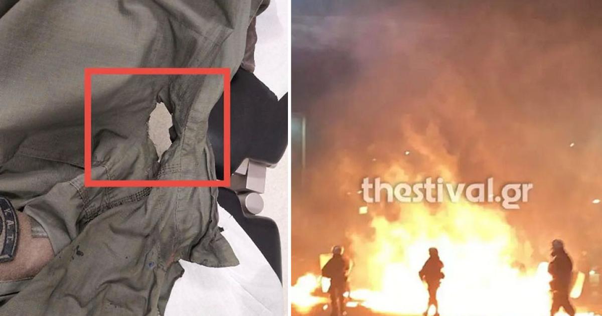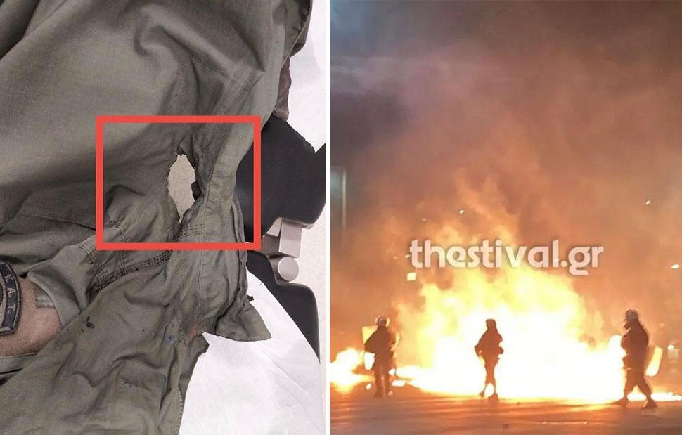 «Άνοιξε ολόκληρη τρύπα στην στολή ενώ φορούσε θώρακα και κάηκε η μπλούζα που φορούσε από κάτω!» επισημαίνει ο κ. Τσαϊρίδης.