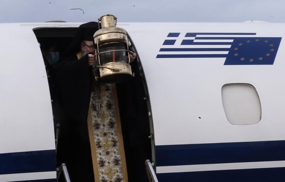 Προσγειώθηκε στο αεροδρόμιο Ελευθέριος Βενιζέλος, το κρατικό αεροπλάνο που μεταφέρει το Άγιο Φως. Η υποδοχή του θα γίνει με τιμές αρχηγού κράτους και ακολούθως ο πρώτος σταθμός του θα είναι το Μετόχι του Παναγίου Τάφου στην Πλάκα και από εκεί μεταλαμπαδεύεται σε όλες τις ενορίες της επικράτειας, μέσω ειδικών πτήσεων, αλλά και οδικώς.