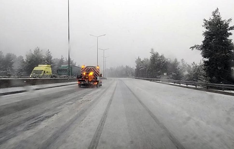 Στο ρεύμα προς Αθήνα στο ύψος του «Σείριου» η Τροχαία έχει κλείσει την εθνική οδό με περιπολικά και τα φορτηγά εισέρχονται υποχρεωτικά στο πάρκινγκ του «Σείριος». Την ίδια ώρα αλατιέρες και εκχιονιστικά δουλεύουν ασταμάτητα για να κρατήσουν το δρόμο ανοιχτό.
