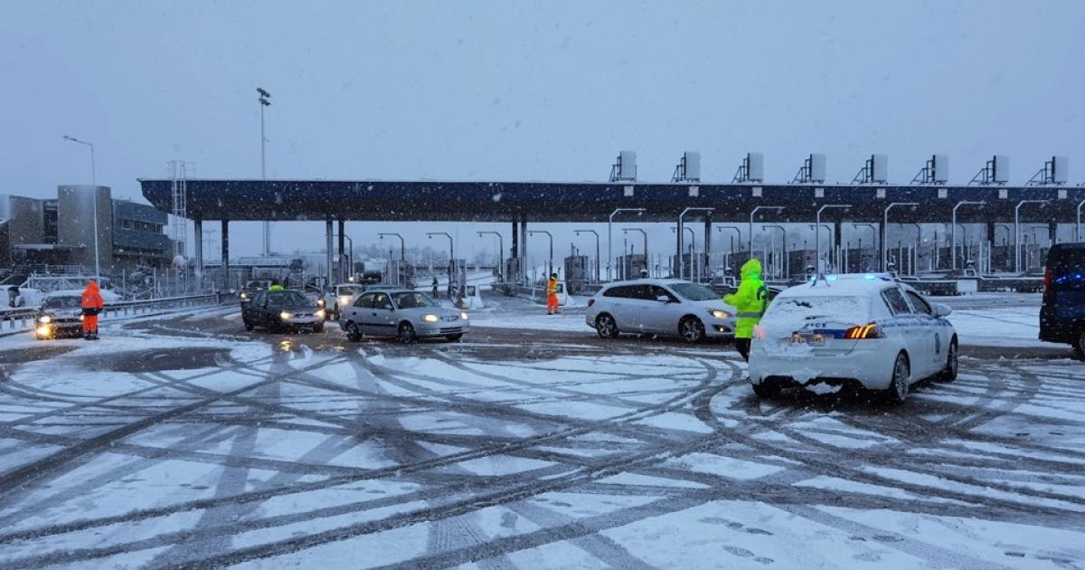 Στα διόδια των Αφιδνών, η Τροχαία λίγο πριν τις 07:00 απαγόρευσε για μισή ώρα τη διέλευση των οχημάτων λόγω της πυκνής χιονόπτωσης. Πλέον η κυκλοφορία διεξάγεται κανονικά για τα οχήματα.