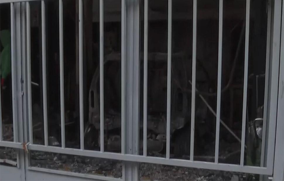 Η επιχείρηση έχει καταστραφεί ολοσχερώς, ενώ είναι ακόμα έντονη η μυρωδιά από τις αναθυμιάσεις.