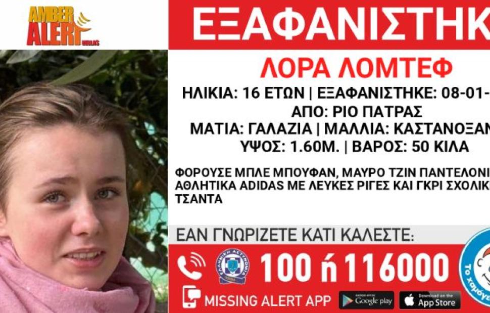 Συναγερμός έχει σημάνει στις Αρχές για την εξαφάνιση της 16χρονης Λόρας Λ. στο Ρίο Πατρών, με την υπόθεση να λαμβάνει πλέον διαστάσεις θρίλερ. Η ανήλικη αγνοείται από τις πρωινές ώρες της Πέμπτης, όταν έφυγε από το σπίτι της με προορισμό το σχολείο και δεν επέστρεψε ποτέ.