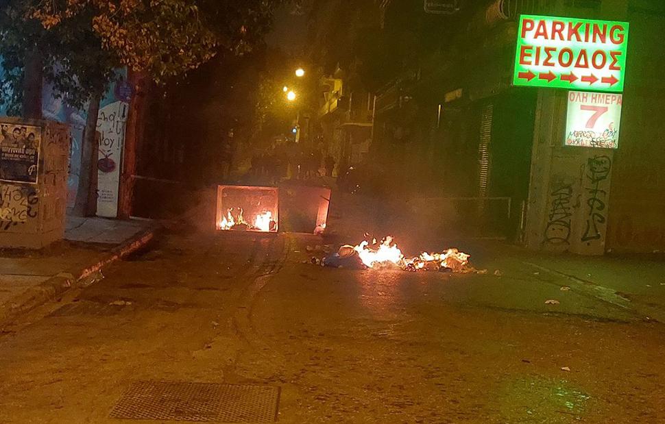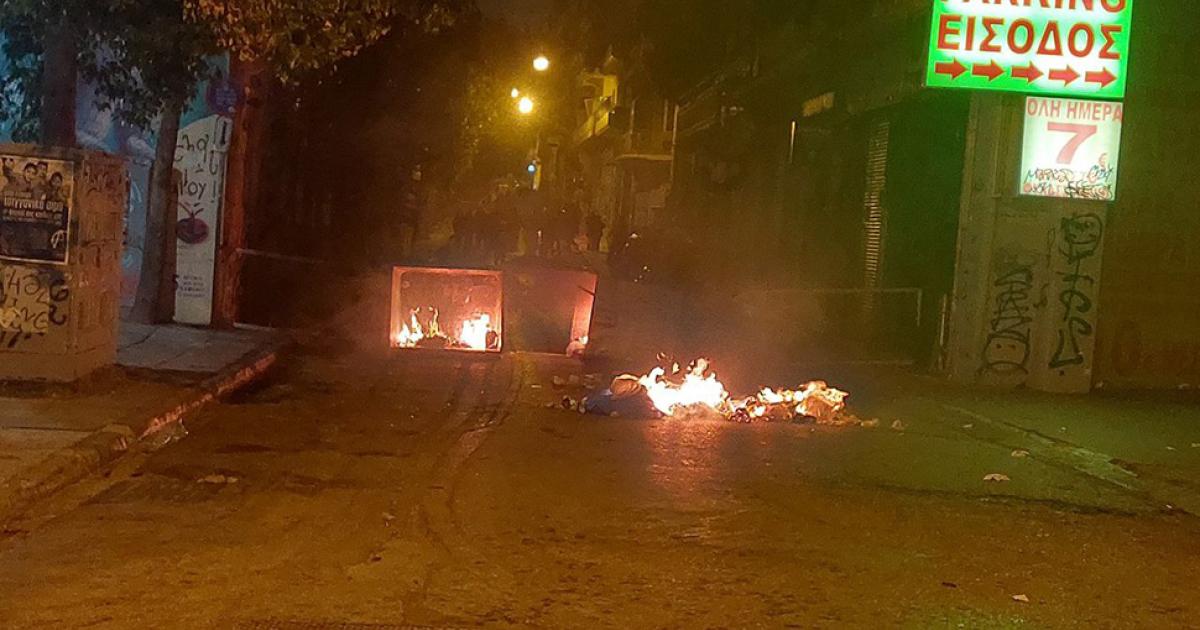 Νωρίτερα, άγνωστοι έστησαν οδοφράγματα στη Στουρνάρη, ενώ έπεσαν και κρότου λάμψης από τη μεριά των ΜΑΤ.