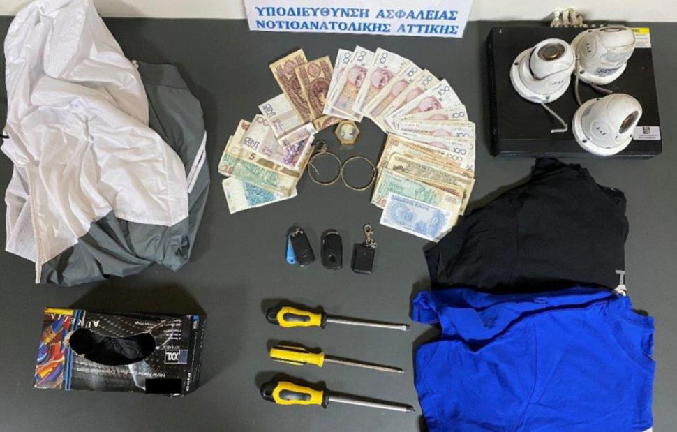 Από τις έρευνες που πραγματοποιήθηκαν στα «επιχειρησιακά» οχήματα και σε οικία τους, βρέθηκαν και κατασχέθηκαν τελάρα με φρούτα, χαρτονομίσματα διαφόρων χωρών, κοσμήματα, κάμερες και καταγραφικό μηχάνημα. Οι συλληφθέντες οδηγήθηκαν στον κ. Εισαγγελέα Πλημμελειοδικών Αθηνών.