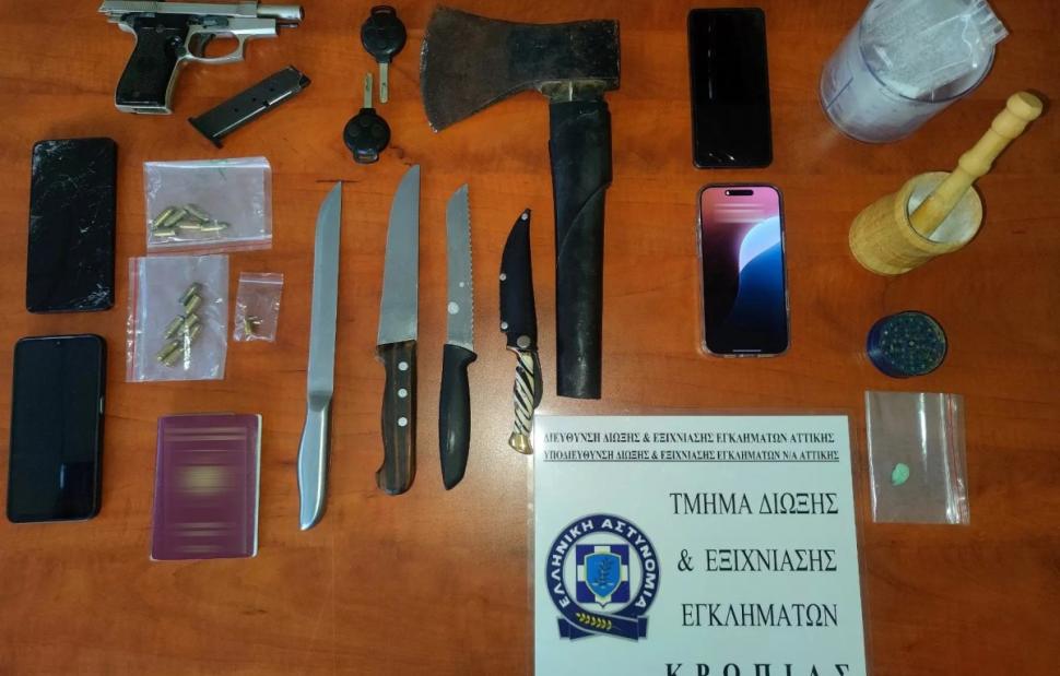 Από το Τμήμα Δίωξης και Εξιχνίασης Εγκλημάτων Κρωπίας σε συνεργασία με την Υποδιεύθυνση Δίωξης και Εξιχνίασης Εγκλημάτων Νοτιοανατολικής Αττικής, εξιχνιάσθηκε περιστατικό πυροβολισμών έξω από οικία που σημειώθηκε βραδινές ώρες της 30-9-2025 στο Κίτσι στο Κορωπί.